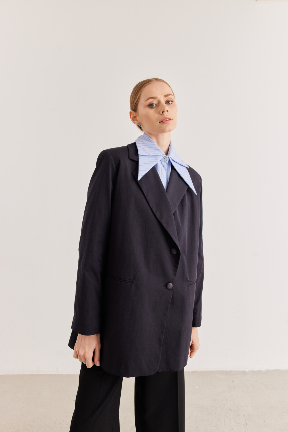 Ürün Detayları: Ceket yaka, önden çift düğme kapamalı, arka detaylı oversize ceket